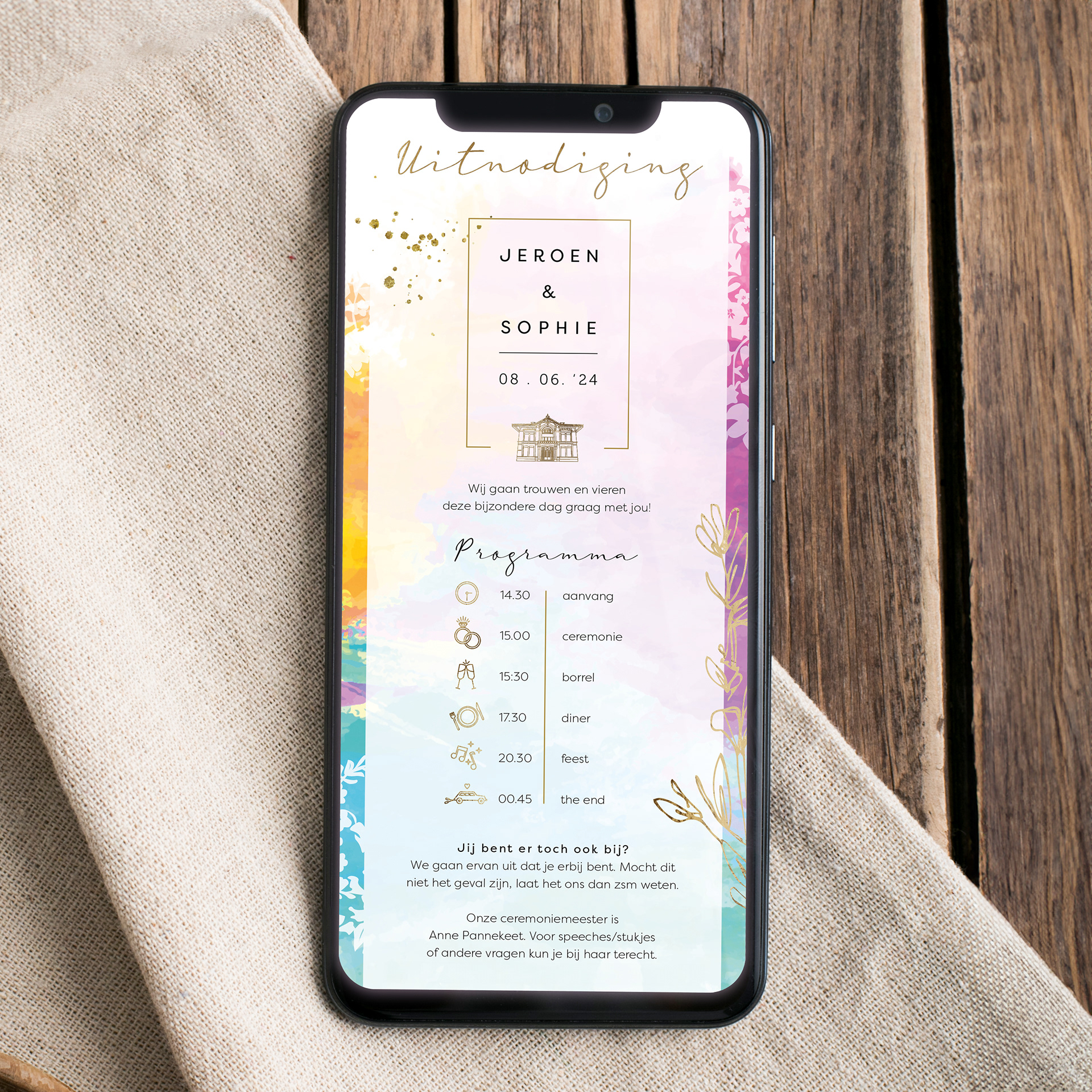 Dit jaar heb ik toevallig veel prachtige trouwprojecten mogen doen, waaronder deze kleurrijke set voor Jeroen & Sophie.